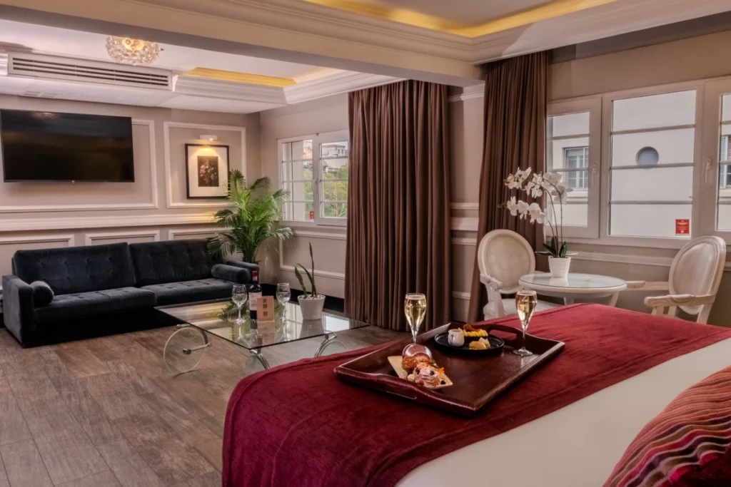Relájate en 39 m² con una cama extragrande (o dos individuales si lo necesitas), sofá acogedor y minibar. Ideal para quienes buscan amplitud, comodidad y elegancia.